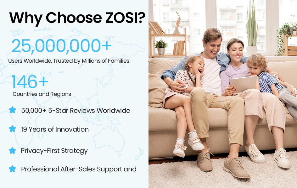 View live feed, replay footage, and customize settings from your mobile devices, whenever and wherever, with an all-in-one ZOSI Smart App/AVSS Client.