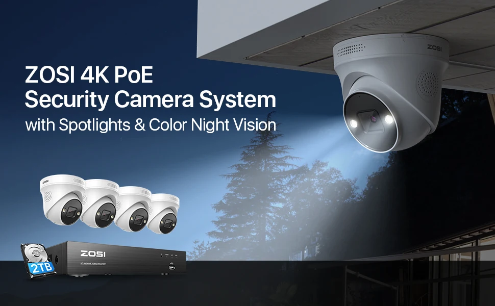 ZOSI 4K 8MP 5MP POE Video Surveillance Kit 8CH H.265 Home CCTV NVR Set Color Night Vision AI Detection IP Security Camera System
